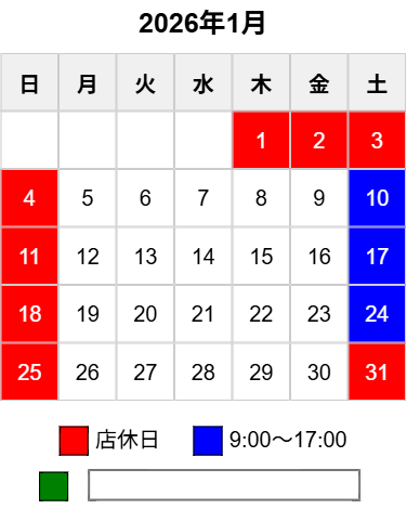 12/13(土)は臨時休業、仕事納めは12/26(金)となります。