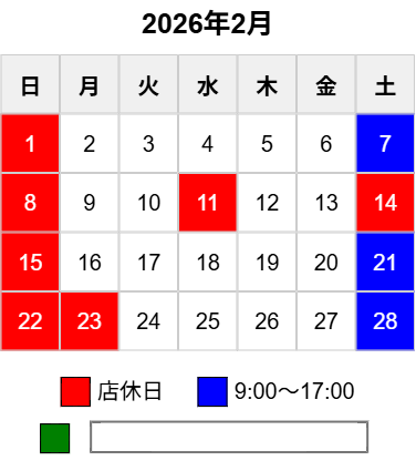 2026年2月の営業日のお知らせです。